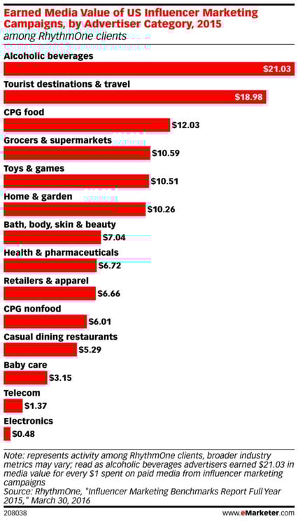 Why are budgets rising so quickly? The short answer is because influencer campaigns have proven again and again that they achieve meaningful results and, thus, influencers have vastly increased their fees. The chart below on earned media value shows just how valuable influencer marketing is by vertical market.