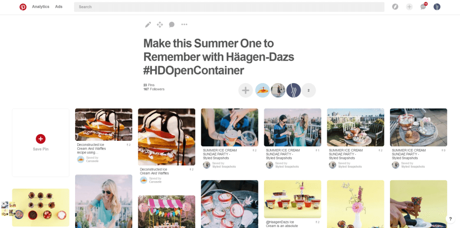 Pinterest is the perfect environment for brands to get exposure in native content. Themed Pinterest boards that are sponsored by food brands continue to see huge engagement. A food board hosted by a brand doesn’t necessarily have to include only pins that include that brand. Instead, by being more of a resource and providing a broader range of content – say a healthy eating board, these boards generate engagement and followers because they do not appear to be pushing product.