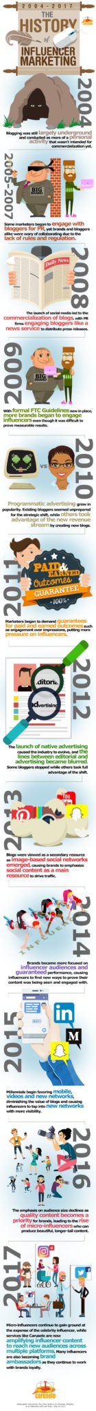 In one of our recent webinars, Jory Des Jardins discussed the emergence of influencer communications in detail. As co-founder and former President of BlogHer in 2005 and The Virago Group in 2016, Des Jardins has a significant pedigree in blogging and influencer outreach. The following infographic depicts her perspective on the evolution and history of influencer marketing.
