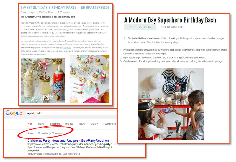 Given a target of moms with young children, we knew this audience would be looking for and sharing ideas for planning birthday parties. So we partnered with entertainment and mommy influencers who created blog posts and beautiful, yet organic-style imagery featuring Reddi-wip as part of a larger birthday party planning story.