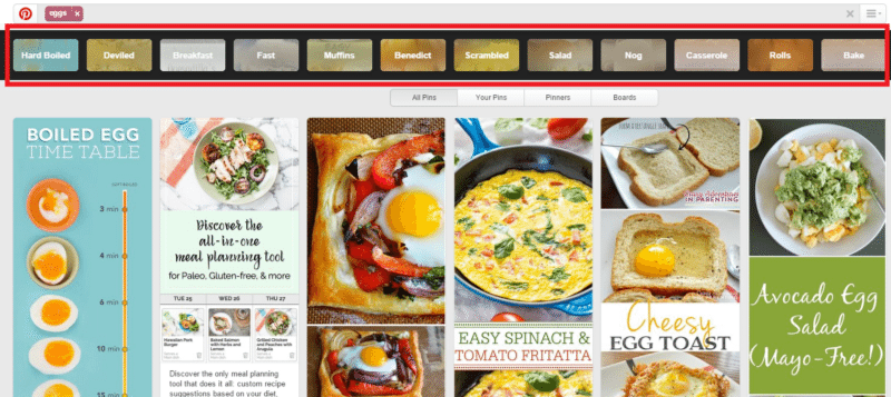 Sure, we might (probably would) partner with influencers who create recipes — like the ones we worked with for a campaign supporting the Cranberry Marketing Committee. A quick search on Pinterest for most food items will show the top shared and searched keywords paired with “eggs”, for example, are recipes based.