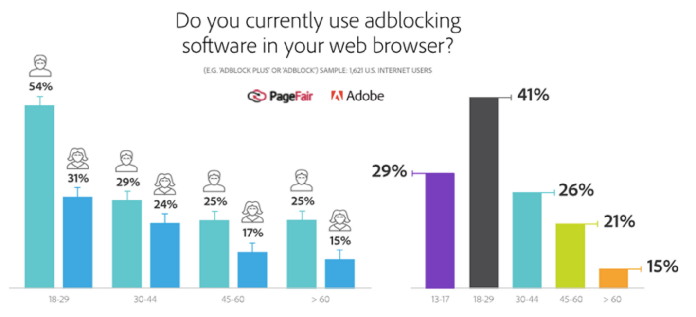 A recent study showed that ad blocking in the US grew by 48%, to 45 million active users, between June 2014 and June 2015. And who do you think is leading the charge? Yep – it’s those pesky tech-savvy millennials. A staggering 41% of 18-29 year olds say they are using adblock software.